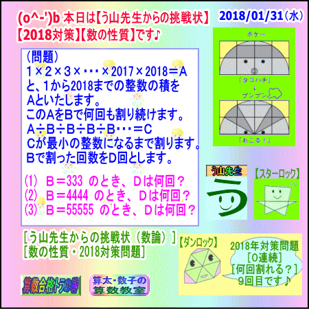 2018/01/31(木)[0連続][何回割れる?]333,4444,55555