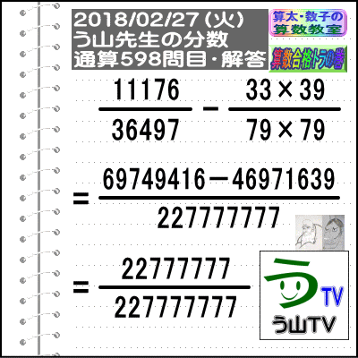 (本日、2月27日相応しい面白い分数問題を作りました☆)