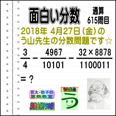 (*^ー^)ノ[う山先生の分数(2018年-038)]です☆