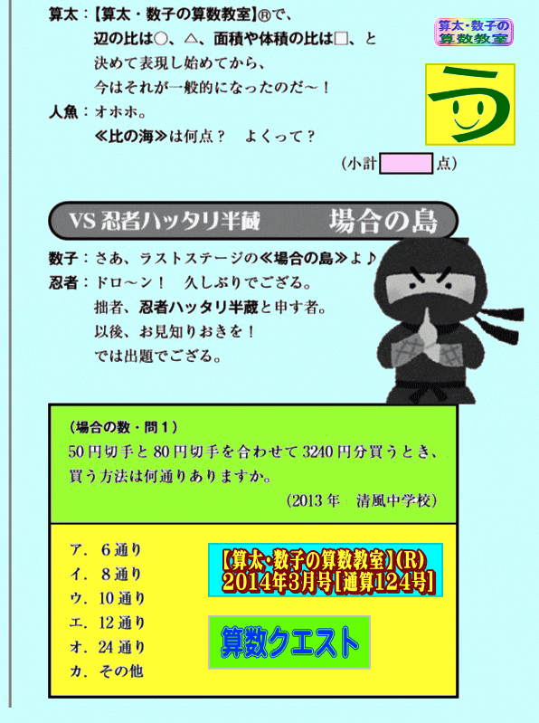 【算太・数子の算数教室】(R)の楽天ブログです☆ [算数合格トラの巻]も見てね!^^