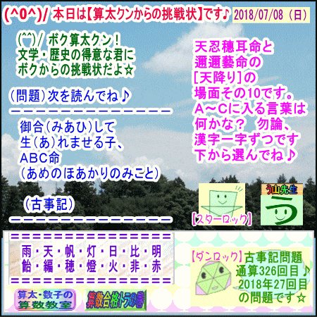 【算太クンからの挑戦状2018】(文学・歴史・古事記) です☆