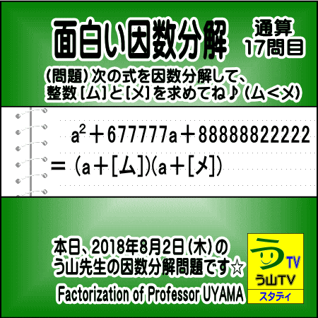 新企画[う山先生の因数分解]の問題です♪