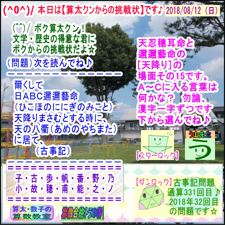 【算太クンからの挑戦状2018】(文学・歴史・古事記) です☆