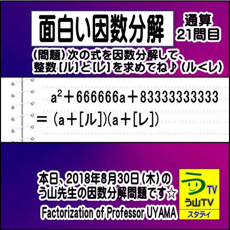 (*^ー^)ノ[う山先生の因数分解]です☆