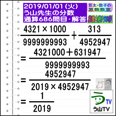 本日、2019年の元日に相応しい分数問題を作成しました☆