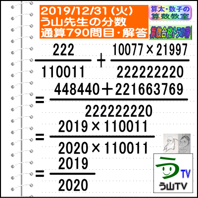 2019/12/31(火)[2019/2020]←本日(o^-')b