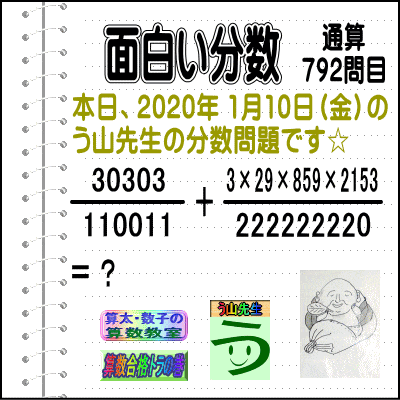 30303/110011 +(3×29×859×2153)/222222220 = ?