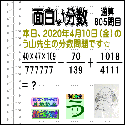 本日は【う山先生の分数・805問目】です☆