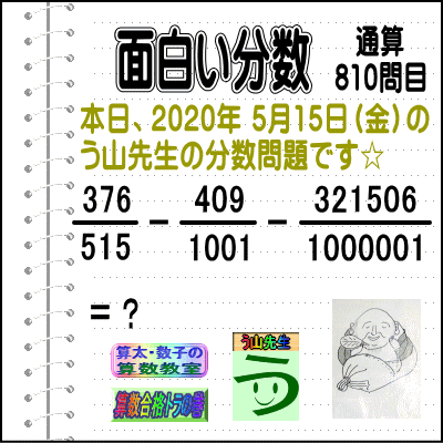 (*^ー^)ノ[う山先生の分数(2020年20問目)]です☆
