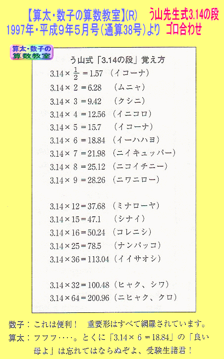 3.14×6=18.84  イーハハヨ(良い母よ) 【重要】