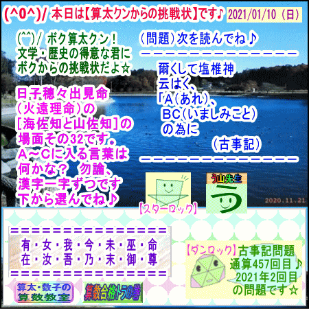 【算太クンからの挑戦状2021】(文学・歴史・古事記) です☆