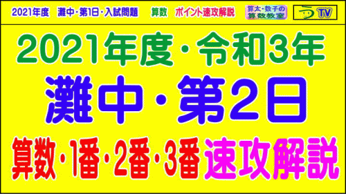 灘中・第2日[算数・1番・2番・3番](2021年)の