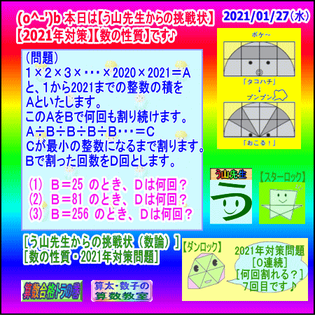 【う山先生・2021年対策問題】[0連続][何回割れる?]7回目