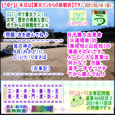 【算太クンからの挑戦状2021】(文学・歴史・古事記) です☆
