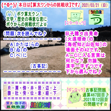【算太クンからの挑戦状2021】(文学・歴史・古事記) です☆