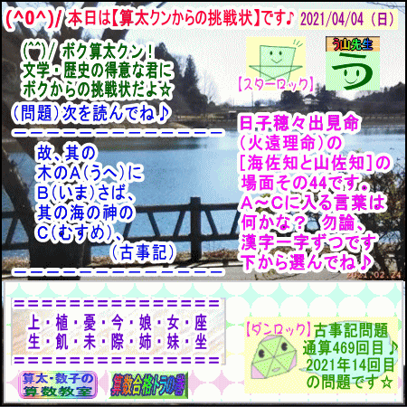 【算太クンからの挑戦状2021】(文学・歴史・古事記) です☆