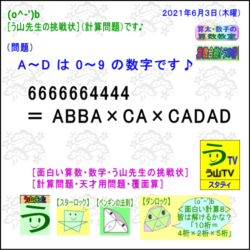 【算太・数子の算数教室】(R)の楽天ブログです☆ [算数合格トラの巻]も見てね!^^