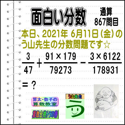 3/47 +(91×179)/79273 -(3×6122)/178931 = ?