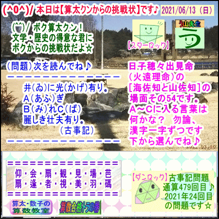 【算太クンからの挑戦状2021】(文学・歴史・古事記) です☆