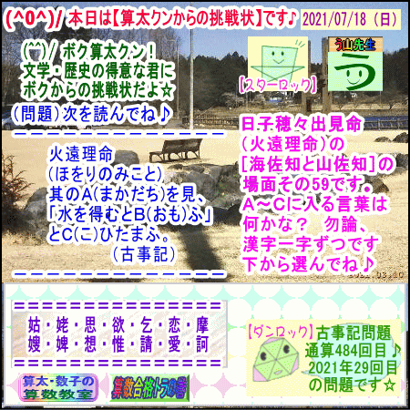 【算太クンからの挑戦状2021】(文学・歴史・古事記) です☆