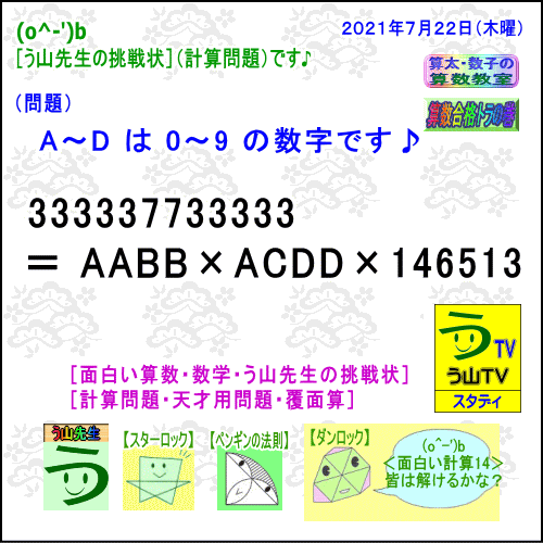 [面白い算数・数学・う山先生の挑戦状]
