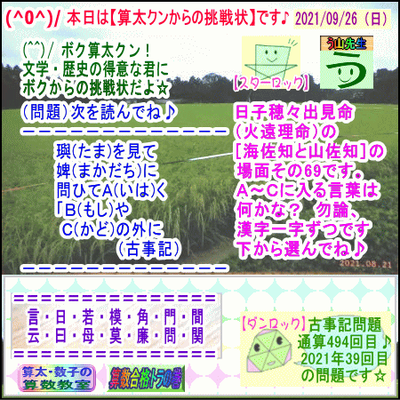 【算太クンからの挑戦状2021】(文学・歴史・古事記) です☆