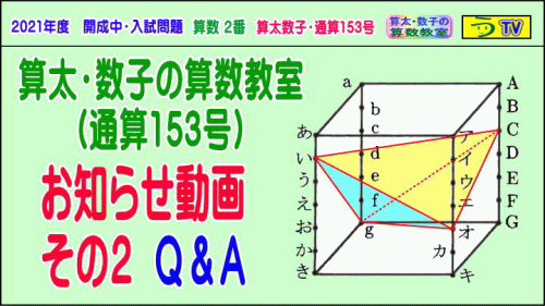 【算太・数子の算数教室】(通算153号)【お知らせ動画2】