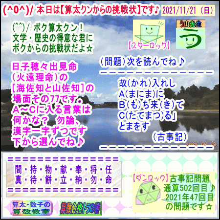 【算太クンからの挑戦状2021】(文学・歴史・古事記) です☆