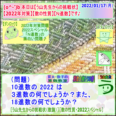 2021/01/17(月)[10進数の2022=3進数の?=18進数の?]