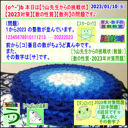 2023/01/03(火曜)[印字問題・数の性質・数列]1000番目、2023番目
