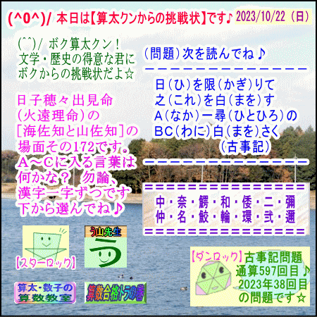 【算太クンからの挑戦状2023】(文学・歴史・古事記) です☆