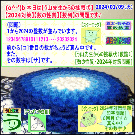 2024/01/09(火曜)[印字問題・数の性質・数列]真ん中の順番、その数字