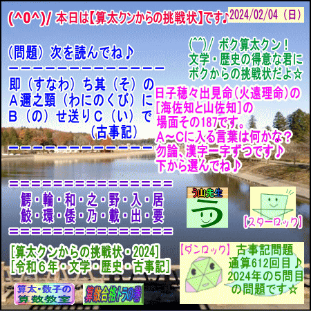 【算太クンからの挑戦状2024】(文学・歴史・古事記) です☆