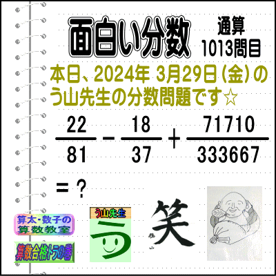 本日は3月29日に相応しい面白い分数問題を作成しました☆