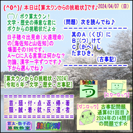 【算太クンからの挑戦状2024】(文学・歴史・古事記) です☆