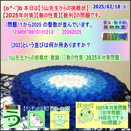 2025/02/18(火曜)[印字問題・数の性質・数列][202]という並びは何か所