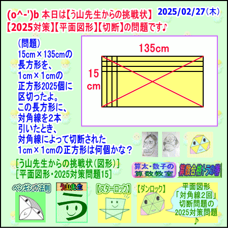 2025/02/27(木曜)【平面図形】【対角線切断・2回】15cm×135cm