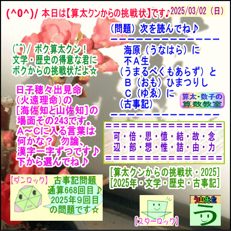 【算太クンからの挑戦状2025】(文学・歴史・古事記) です☆