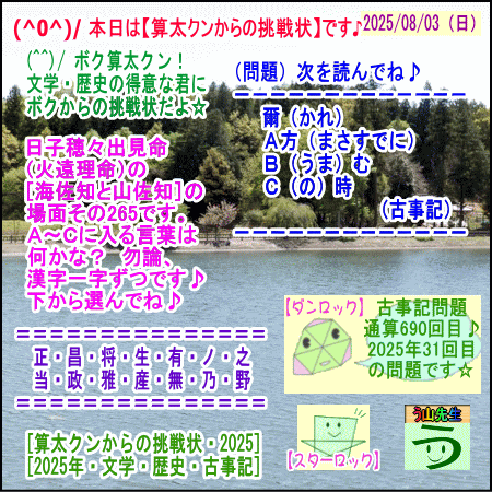 【算太クンからの挑戦状2025】(文学・歴史・古事記) です☆