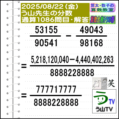 2025/08/22(金) [777717777/8888228888]1086問目←本日(o^-')b