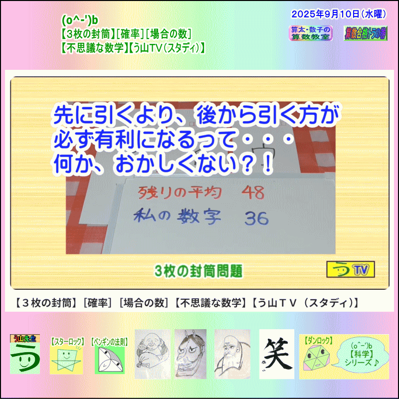 う山先生が、【3枚の封筒】問題として、