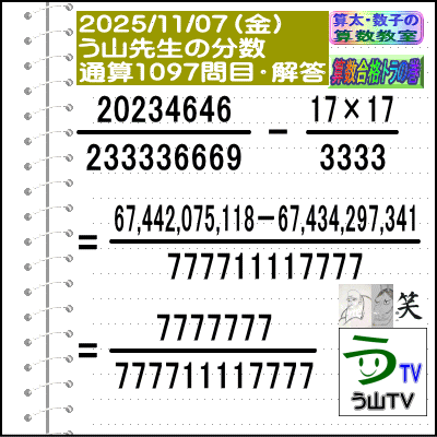 2025/11/07(金) [7777777/777711117777]1097問目←本日(o^-')b