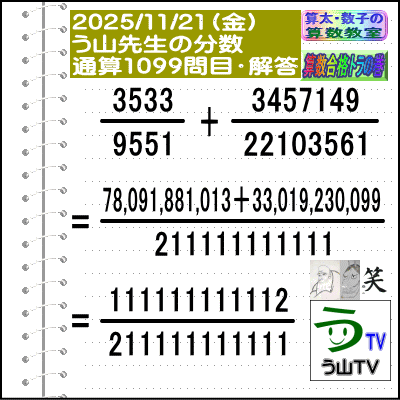 2025/11/21(金) [111111111112/211111111111]1099問目←本日(o^-')b