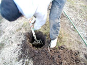 「裏の仕事」といっても怪しい仕事ではありませんよ(笑)雪が溶け、リンドウの先に終わらせたい仕事を終え次の仕事へ。それは稲をハセ掛けするためのハセの縦の柱と言ったらイメージしやすいでしょうか・・・その柱が弱っていたり足りない部分に足したりしたかったのです。ところがこれが結構大変な作業なんですねえ・・・ハセ掛けが表の仕事と表現するとしたら、柱たてはまさに裏の仕事。等間隔でひと穴1メートル掘り続けます。スムーズに掘り下げられればラッキー、でも石だらけだったりすると大変です。でも土だっていろいろですから、負けずに掘るばかりです。この柱も皮がついたままだと腐りやすいので、全部剥ぎ取れれば理想的。(今回は父がこちらに来た時に剥いでくれました。一人で・・・スゴイし有難いなあ・・としみじみ思いました)50年はもつそうです。立てる柱の種類にも向き不向きがあるんですって。こういうことを私は米作りをしていながら初めて知りました。いままでは昔から普通に立っていただろうと思われる柱にハセを掛け当たり前のように使っていました。でも、今回このことを知って昔の誰かが今の私たちのように穴を掘って一本一本立てたものなんですよね!昔と今は変わってきたもの便利になったものってたくさんあるけれど、こうして変わらない仕事もあるんだなあって思ったし、そういうことの存在は昔の人たちと思いを共有できるような気がして嬉しくなりました。それにしても1メートルの穴を掘り続けるってなかなかないことですよね。「穴を掘る」ことに集中するのって面白いですよ(笑)でも、やっていてふと思いました。そういやあ冬もハウス脇やリンドウ畑の雪を早く溶かすために掘っていました。同じように1メートルは確実に・・・。いやあ、逞しくなるはずだわア・・・(笑)