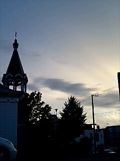 うちの前から見える空だよ。 この夕暮れ空の下で、あずはいろいろ考えるのであった。あれやこれやを。だんだん蒼くなってく空は、色んな事を思い出させて、あずの胸をぎゅぅぅぅぅぅッとさせるのですが、ぎゅぅぅぅぅぅッとしたまま、うつしてみました。今日はこんな感じだよ。