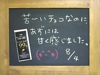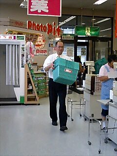 今日はね、めちゃめちゃ忙しかった!!午前中に、拓ボン♪(ひとり息子で中2です)の新しい中学校に行ってきました。先生がたにご挨拶して、校舎を見て、、、がんばれそうかい?拓ボン。頑張るんだぞぉぉぉぉ!!と願いをこめつつ、昼。昼にはお姑さんが、日傘をさしてJRと地下鉄を乗り継いでやって来てくれました。出会ったとき、19でなんもできなかった小娘の私を、あったかく育ててくれたお姑さんです。久々に一緒にお昼を食べて笑って、お義母さん小さくなったなあ、、、なんて思った。切なかった。あずは相変わらず、いいお嫁さんにはなれてないね。。。そしてそして夕方。友人のなかじーが頑張って働いてるとこを激写してきました★ここからはたぶん、あずの友人たちにしかわけのわからん内容だと思います。ごみんなさい!!なかじーは中学校からの友人で、現在34歳。普段は有名なスーパーラ○ズの経理?でデスクワークなのですが、今日は店舗のお手伝い。同級生が働いているとこなんてそうそう見れるもんじゃないので、せっかくだから見てきました★ はいはい、カゴ片付けますよ~♪ よいしょと。 はい、どいてどいて~。・・・・みたいなかんじよ、みんな!!見た?見た???なかじー頑張って働いてたよッ!!!彼は独身で、趣味は中学校から続けているサックスです。たまにコンサートに出たりします♪映画鑑賞も好きだよね。背は何センチだっけ?186だっけ?長身です。札幌の美味しいお店もいっぱい知ってます!!!もしなかじ~に興味のある方、あずの私書箱までご連絡を(笑)あずとの2ショットも撮ったんだけど、キロバイトがでっかすぎてのせれなかった!!ごめんな、なかじー。。。私とのその写真は部屋の一番良いとこに飾っといて♪。。。てなわけであわただしい一日。札幌は今日も暑かったよ。