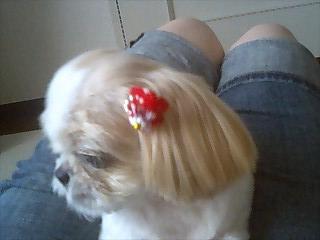 こんなにこんなに暑いのに、もなかはあずに常にベッタリ。もなちゃん、暑いよぅ! ひっつき犬。近すぎでピンボケ。そんなもなかの可愛いオデコにキスキス…!遠くで、町内会の盆踊りの音が聞こえます。