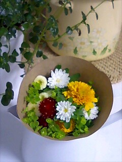 今日の札幌は暑すぎた。。。10年間、涼しい浦河の地で生息していたあずとしては、かなり厳しい一日でございました。うちのワンコたちもグッタリ。。。夕方は中学校からの友人、みやちゃんと久々にお茶したよ♪あずが元気でも凹んでても、いつも変わらず接してくれるみやちゃんが大好きだ。話題は、主婦の目線で考えた、絶対もうかる隙間産業で、一儲け!!その内容は、、、家庭の雰囲気を味わえる一般家庭パブ!!←だよね?(笑)ドアを開けるとそこはなんとなく新婚チックな一般家庭。そこで可愛い奥さん(あずとみやちゃん。爆!!)が登場して、お風呂かご飯か尋ね、旦那さん(お客)の愚痴や話を笑顔でマンツーマンで親身に聞いてあげるという(笑)だけど話を詰めていくうちに、15分程で経営が暗礁に乗り上げて計画中断…。暑くて脳が解けてると、普段思いつかないようなことを考えますな。ぷぷぷ・・・帰りのかわいいお花屋さんでお花買った。明日も暑いんだべか。北海道の夏は短い。数日間の真夏だね。 なごむね~♪暑いけど長持ちするといいな。