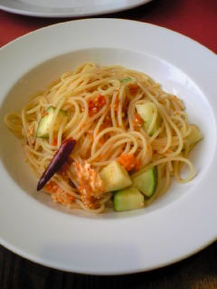 写真は、根室産花咲がにの内子とズッキーニのパスタ☆