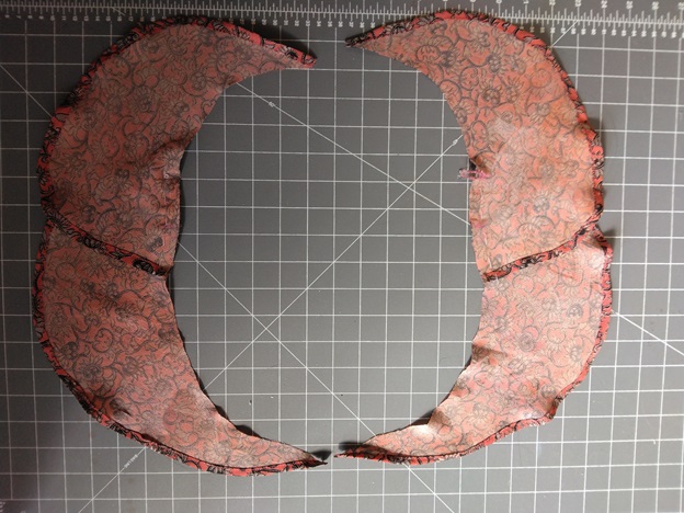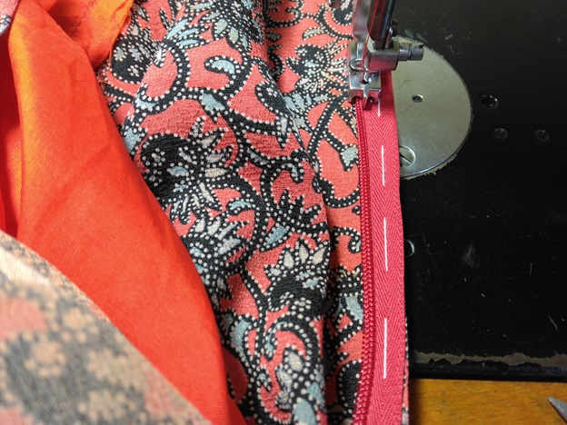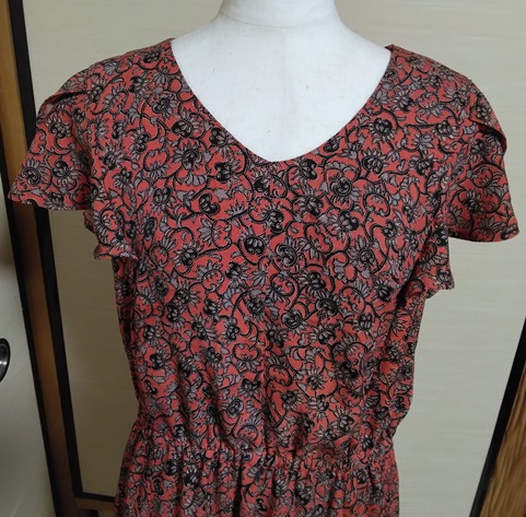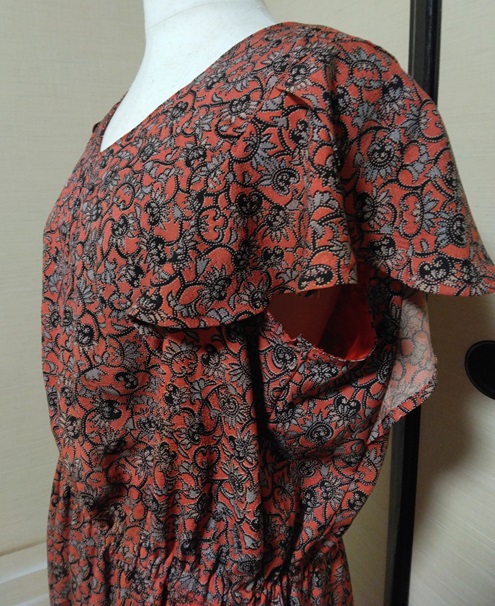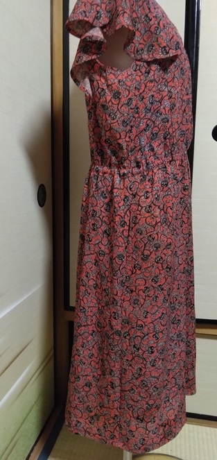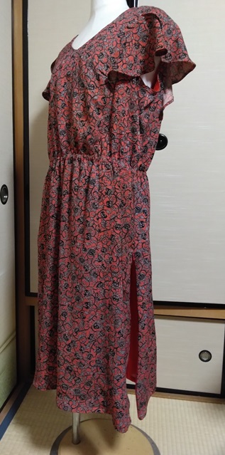前後身頃の両脇布ではさむようにフリル縫い付け。